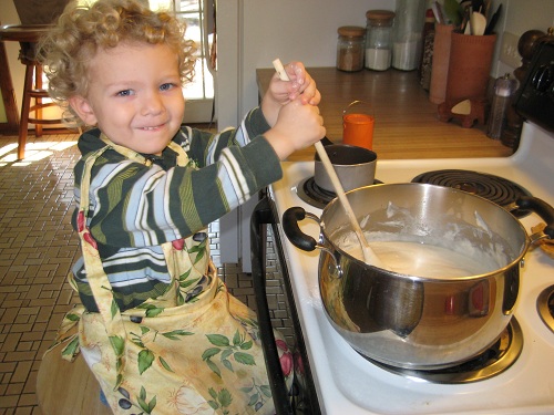 This year, however, I had the benefit of a little helper that Santa let me borrow. It is still surprising to me that my little boy is old enough already to actually help me with projects. I do use the word “help” loosely, of course – he is after all only two. But even if his help wasn’t a time or effort saver, it was most definitely a mood saver during the 16 hours I spent this weekend completing everything. And, as is always the case, he was more of a teacher to me through the whole process than I was to him. I may have taught him to mix ingredients or add just the right touch, but he taught me patience, understanding, a healthy sense of wonder, and an appreciation for licking all things yummy! And he helped me see all the old classic Christmas cartoons though a fresh set of eyes. So at the risk of spoiling the surprise (if you expect to receive a gift from me, don’t look too closely or analyze too much), here are a few highlights from our weekend of gift making magic. I obviously can’t include the final result of the gifts we made for the adults, but since there are presumably few children who read my blog, I will share those – parents don’t tell!