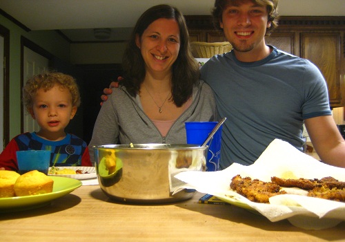 Sitting down to our family fish fry after a LONG, relaxing day of fishing at the reservoir. It is an amazingly satisfying feeling to catch, clean, and cook your own food. My boys were pretty pleased as well.