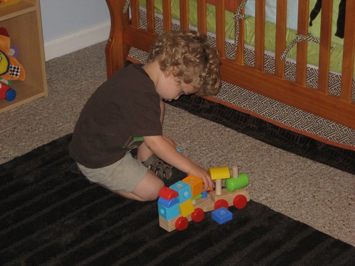 Spending some quiet time in the morning rediscovering his old toys in Owen's room. I can't wait to see them playing together!